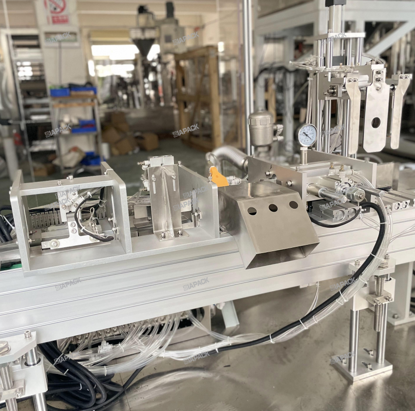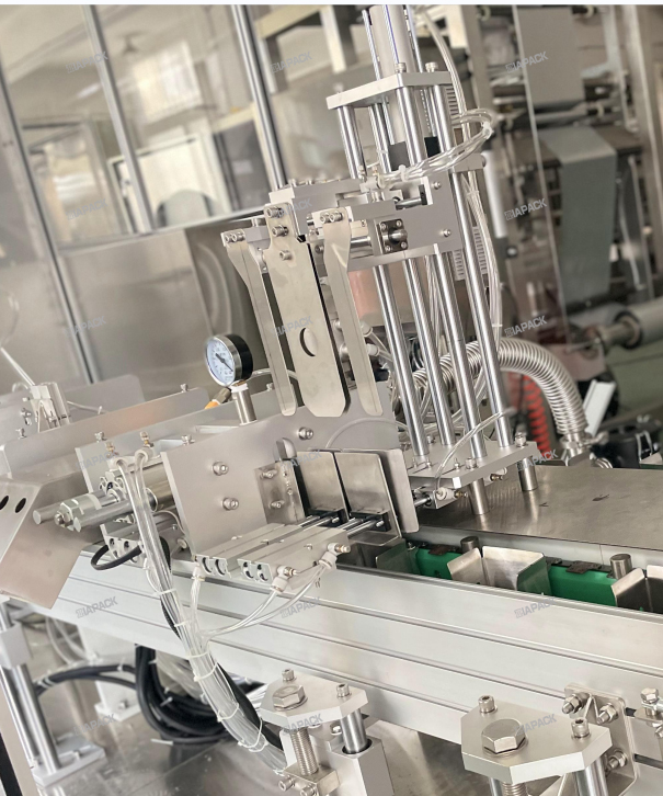 Эта машина имеет специальную конструкцию для изготовления складного мешка с верхней маркировкой. После того, как полный мешок с продуктом падает на эту машину. Эта машина будет нести мешок, пройдет однократное складывание рта мешка, а затем наклеит этикетку. Каркас машины изготовлен SUS304. ПЛК и сенсорный экран под брендом Siemens. Пневматические детали под брендом SMC. Основные электрические компоненты под брендом Omron и Schneider. этикетки разделены, отправка этикетки. Детектор этикетки и нажатие этикетки.