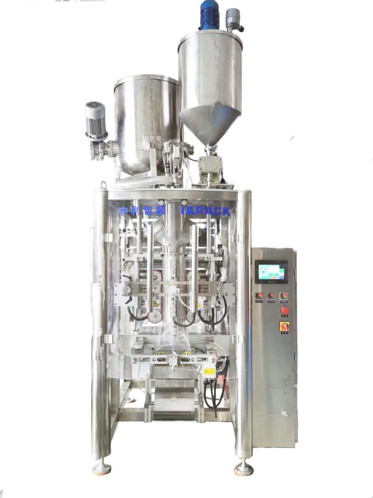Этот агрегат был разработан для нужд жидких и вязких продуктов. Установка состоит из затирочной машины и упаковочной машины; упаковочная машина имеет простую конструкцию и проста в эксплуатации; машина объединяет функции изготовления пакетов, наполнения, запечатывания и подсчета. Он использует серводвигатель для протягивания пленки и имеет функцию автоматической коррекции отклонения.