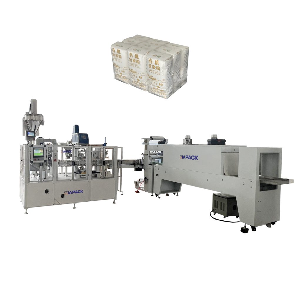 наполнительно-склеивающая машина, один комплект Электрический шкаф управления, один комплект конвейерной машины. По требованию клиента мы можем подобрать машину для струйного принтера и термоусадочную упаковочную машину для готовой продукции. Готовый пакет может иметь красивую форму. Готовый бумажный пакет дружественна к окружающей среде. Вся линия широко используется для упаковки пшеничной муки, кукурузы, сахара и т. д.