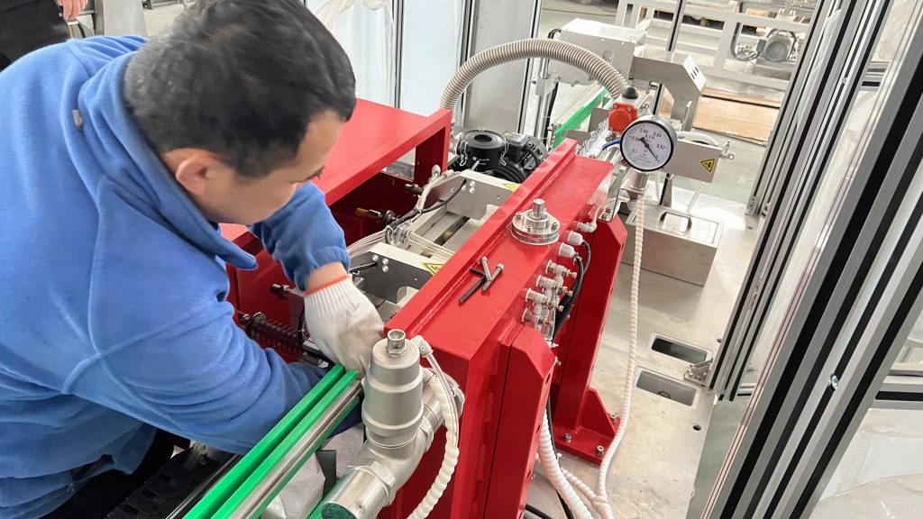 Наш клиент из Ирана заказал один комплект автоматической вакуумной упаковочной машины для формования кирпичных пакетов для 250-граммового кофейного порошка. И, следуя требованиям клиента, мы покрасили вакуумную камеру в красный цвет в качестве предупреждения.