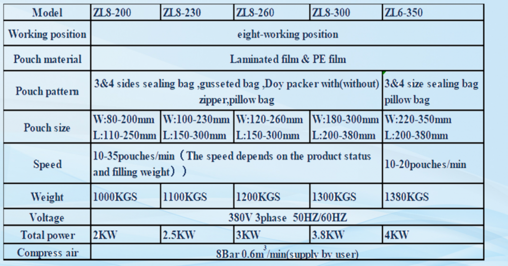 - Скорость этой машины регулируется путем преобразования частоты в зависимости от диапазона, а фактическая скорость зависит от типа продуктов и пакета.