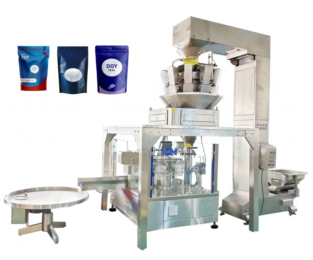 Предварительно изготовленная машина для заполнения и герметизации пакета, состоящая из 8 рабочих станций с эффективностью и стабильностью, подчеркивает упаковку стоячего мешка, сумку на молнии, мешок для слива и различные готовые пакеты. В сочетании с различными дозирующими системами (комбинированный весовой дозатор / линейный весы / шнековый шнек / поршневой наполнитель) и автоматическими подъемными конвейерами он широко применяется для гранул, жидкости и порошка.