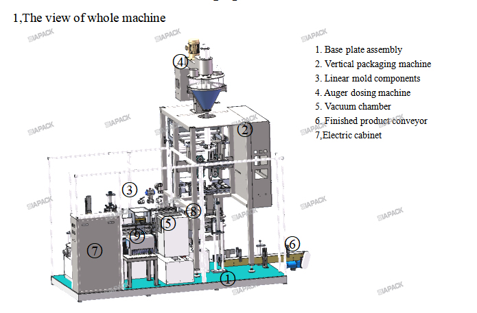 Эта вакуумная упаковочная машина может осуществлять полностью автоматическое изготовление пакетов, их удаление, подачу, взвешивание, вибрацию материала, формование, вакуумирование, запечатывание и доставку готовой продукции в одном устройстве, а также упаковывать сыпучие материалы в формы с фиксированным весом с высокой добавленной стоимостью. Шестигранный пакет. Это устройство широко используется при вакуумной упаковке зерновых продуктов, таких как рисовые зерна и порошкообразные материалы. Пакеты имеют красивую форму и хороший эффект запечатывания, что удобно для упаковки, упаковки или прямой розничной торговли.