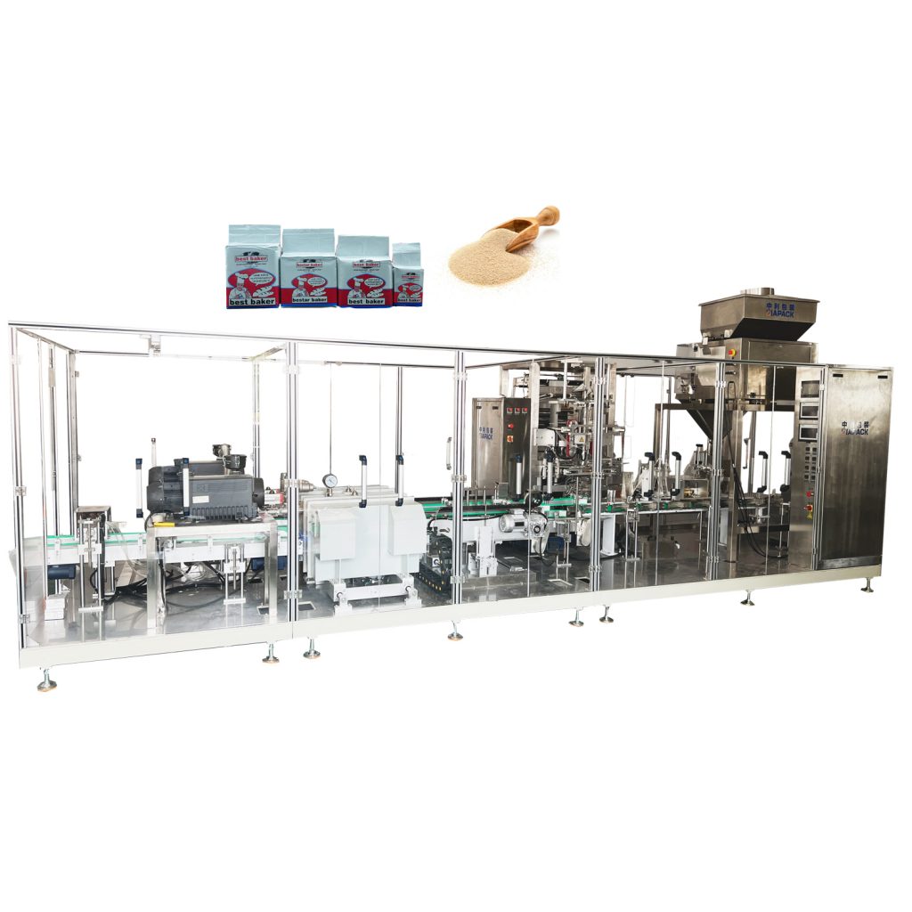 Эта машина включает в себя один комплект вакуумного элеватора ZK3 для подачи сухих дрожжей, один комплект ZL520, вертикальную машину для упаковки и запечатывания пакетов. Эта машина широко используется для упаковки пищевых аптечных химикатов и других продуктов в виде порошка или мелких гранул. Например, кофейный порошок, дрожжевой порошок, пшеничная мука и т. Д. Вся машина использует внутреннюю перекачку для вакуумного продукта. Степень вакуума очень высока, а скорость упаковки очень высока, может достигать 30 пакетов в минуту. Готовый продукт имеет длительный срок хранения и красивую форму.